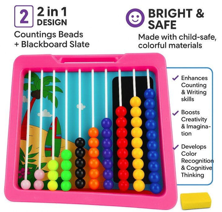 2 in 1 Slate Board & Counting Frame, Comes With Duster and pair of chalk.